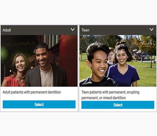 Selecione o tipo de paciente adulto ou adolescente e o pacote abrangente.